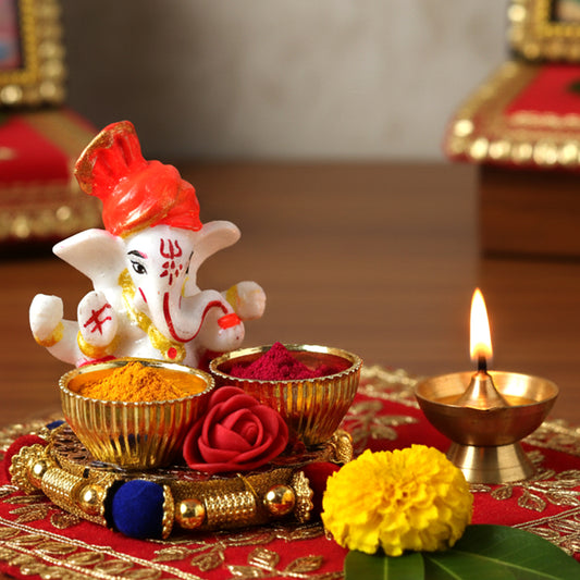Decorative Lord Ganesha Pooja Thali Set (1 Pc)