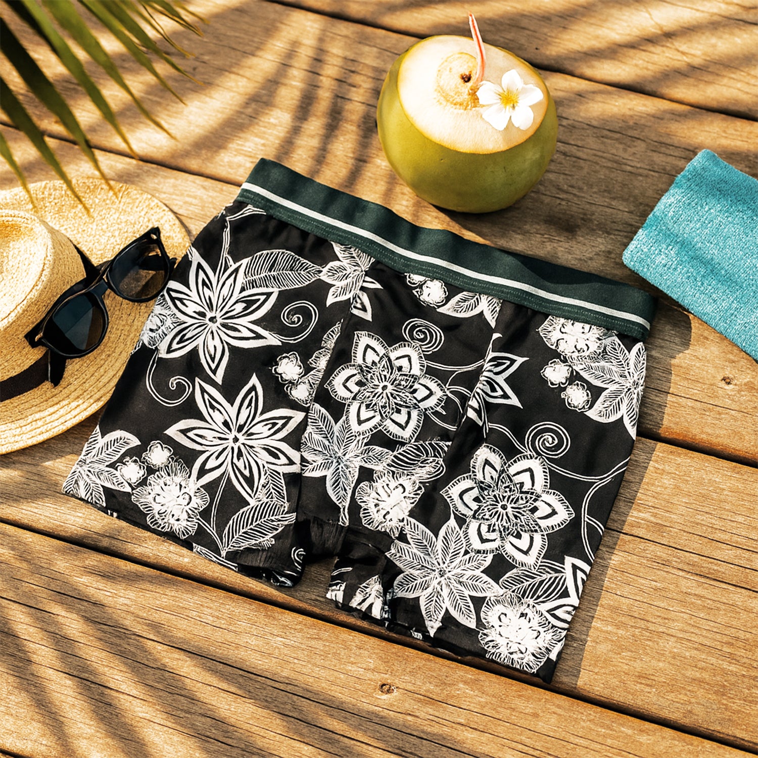 Men’s Boxer Shorts – Medium Size, Cotton-Rich Stretch Knit with Soft Elastic Waistband | Black & White Floral Printed Everyday Innerwear | 1 Pc