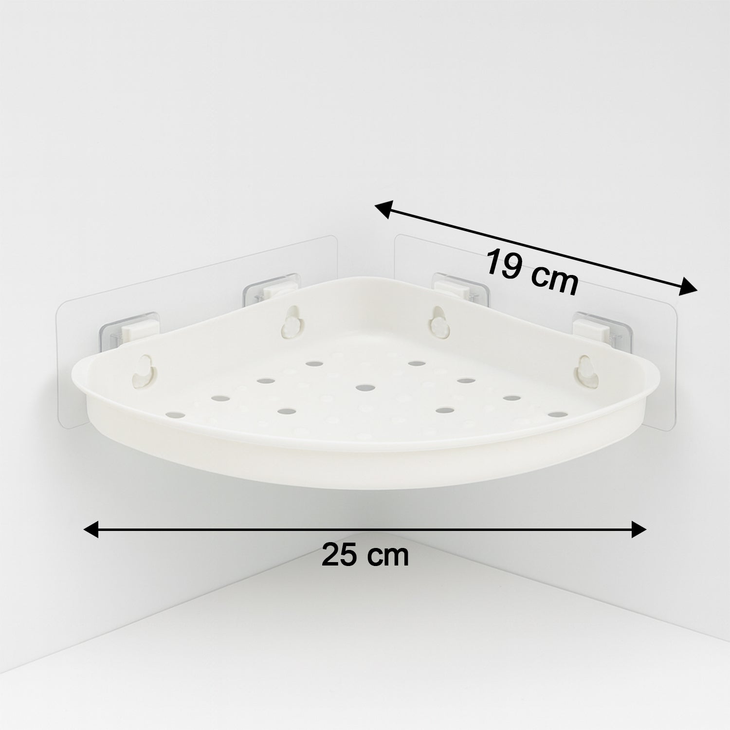 Self-Adhesive Corner Bathroom Shelf with Fast-Drain Holes | No-Drill Plastic Wall Organizer for Toiletries, Kitchen & Utility Storage, Seamless Storage Rack (1 Pc)